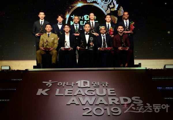 K리그1 수상자들이 기념촬영을 하고 있다.