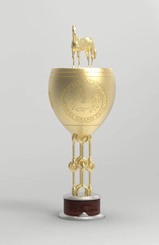 한국마사회도 한국 경마의 상징을 만들기 위해 그랑프리 우승컵 제작을 결정했으며, 한국의 미(美)와 경마의 정통성을 담은 영구 트로피로 제작했다. 한국마사회 말박물관과 작가 최용훈의 협업으로 디자인했다. 14K 도금이며, 천마와 왕이 등장하는 한국 전통 모티프들을 사용하여 그랑프리의 권위를 상징하도록 했다.