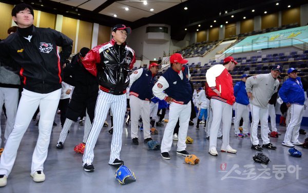 3일 서울 등촌동 KBS 아레나에서 프로야구선수협회가 주최하는 ‘2019 빛을 나누는날’ 유소년야구클리닉이 열렸다. 10개 구단 선수들이 참석해 몸을 풀고 있다.