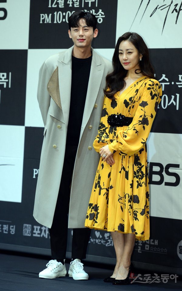 3일 서울 신도림 라마다호텔에서 열린 KBS 수목드라마 ‘99억의 여자’ 제작발표회에 참석한 이지훈과 오나라가 카메라를 향해 포즈를 취하고 있다.