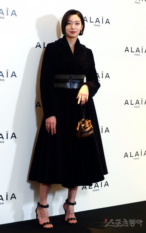 모델 이호정이 3일 서울 강남구 압구정동 갤러리아 명품관 EAST에서 열린 알라이아(ALAIA) 국내 첫 단독 매장 오픈 이벤트 포토월에서 포즈를 취하고 있다.