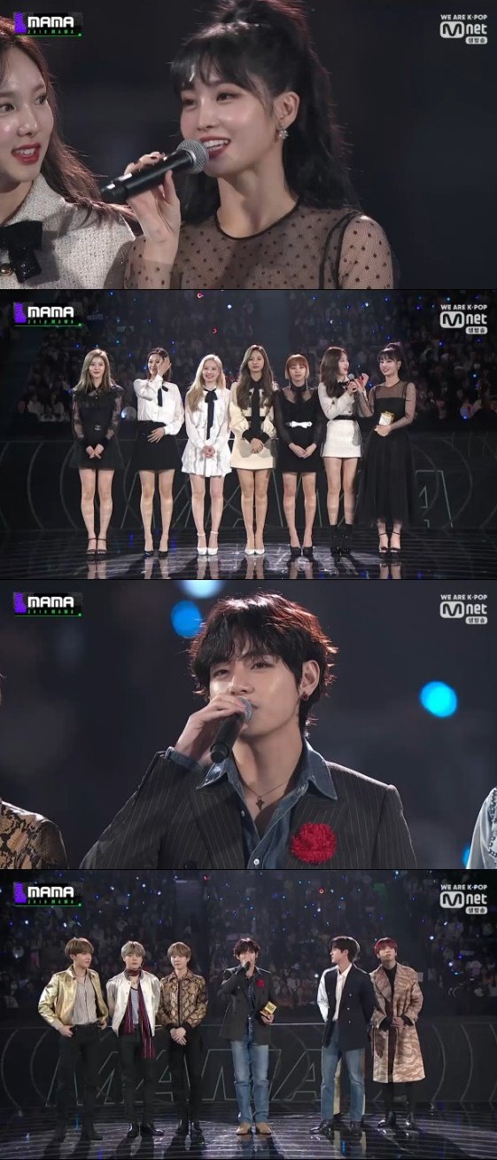 그룹 트와이스와 방탄소년단이 \'2019 MAMA\' 큐텐 페이보릿 아티스트 상을 받았다.