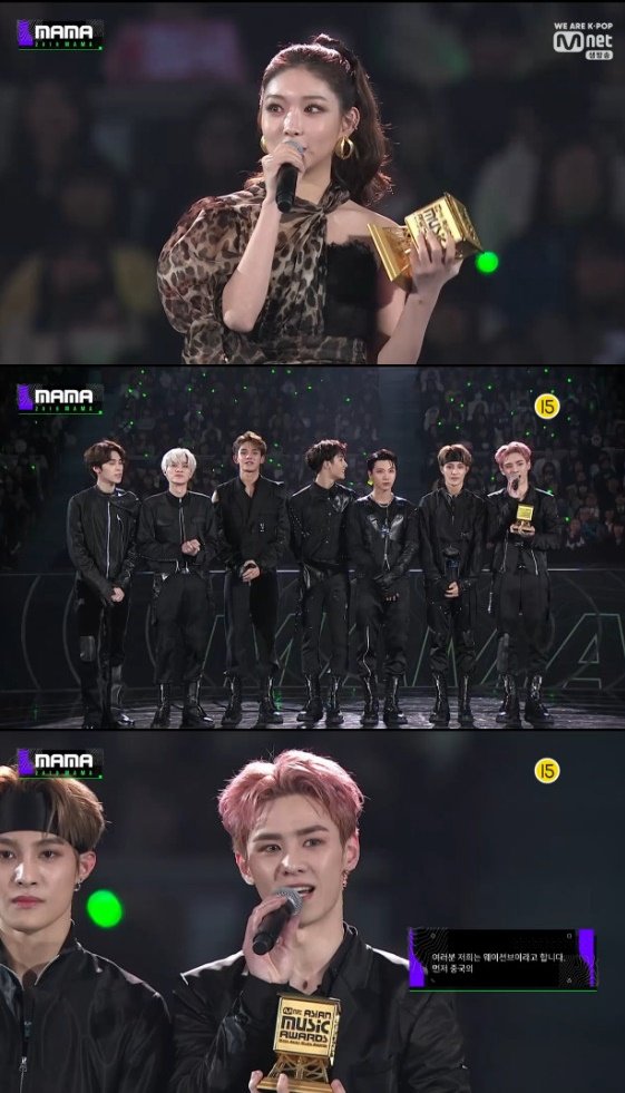 가수 청하와 그룹 WayV가 \'2019 MAMA\' 여자 가수상과 베스트 뉴 아시안 아티스트 상을 받았다.