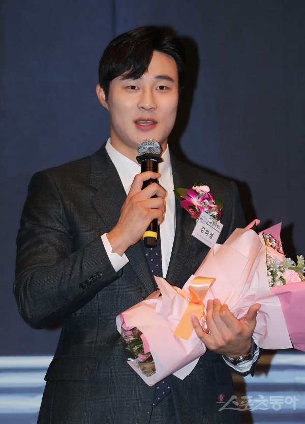 키움 히어로즈 김하성이 5일 서울 서초구 양재동 L타워에서 열린 ‘2019 한국프로야구 은퇴선수의 날 시상식’에서 최고의 타자상을 수상하고 소감을 밝히고 있다.