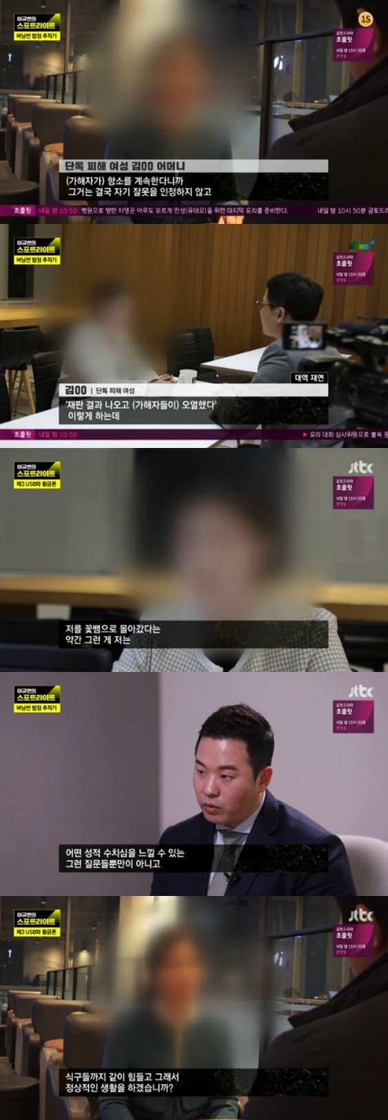이날 방송에서 정준영과 최종훈이 1심에 대해 항소를 하자 피해자들의 가족 중 한 명은 “자기 잘못을 인정하지 않으니 인간이 아니다. 오열을 했다고 하는데 잘못을 뉘우치는 게 아니라 억울해서 우는 것 같다”라고 말했다.