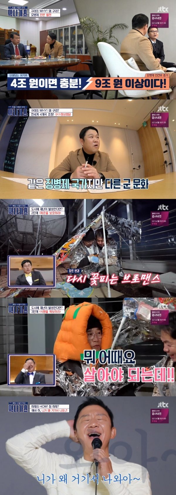 먼저 ‘WHY! 왜 구랴?’ 코너에서 김구라는 논란의 중심 모병제(募兵制)의 찬반 논쟁의 이슈를 추적해 관심을 끌어당겼다. 김종대 국회의원과 한국국가전략연구원 김대영 연구원을 만나 논란의 쟁점을 전문적이고 세밀하게 다뤄 정확한 지식과 다양한 목소리를 전했다.