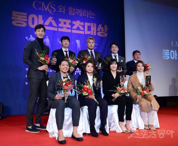 스포츠동아가 동아일보, 채널A, CMS(센트럴메디컬서비스㈜)와 공동으로 주최하고 국내 5대 프로스포츠(프로야구·프로축구·남녀프로농구·남녀프로배구·남녀프로골프) 종목별로 올 한해를 빛낸 최고의 선수를 선정하는‘CMS와 함께하는 2019 동아스포츠대상’시상식이 11일 서울 광화문 포시즌스호텔서울에서 개최됐다. 각 종목별 올해의 선수상 수상자들이 기념촬영을 하고 있다.