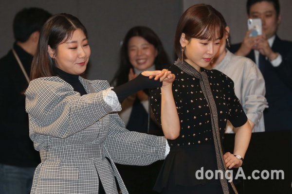 배우 라미란(왼쪽)과 서현진이 11일 오후 서울 구로구 라마다 서울 신도림 호텔에서 열린 tvN 드라마 블랙독 제작발표회에 참석하고 있다.