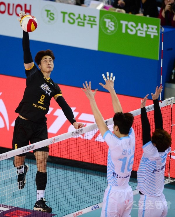 12일 인천 계양체육관에서 ‘2019-2020 도드람 V리그’ 인천 대한항공과 의정부 KB손해보험의 경기가 열렸다. KB손해보험 김학민이 스파이크를 때리고 있다.