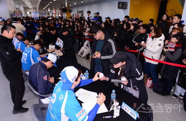 NC 박민우, 롯데 박세웅, kt 강백호, LG 고우석, 삼성 원태인이 팬사인회를 갖고 있다.