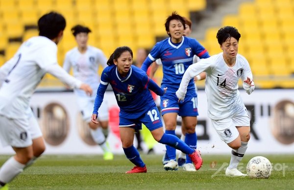 15일 부산 연제구 아시아드주경기장에서 열린 ‘2019 EAFF(동아시아축구연맹) E-1 챔피언십(동아시안컵)’ 한국과 대만의 여자부 축구 경기에서 한국 권은솜이 돌파를 시도하고 있다.
