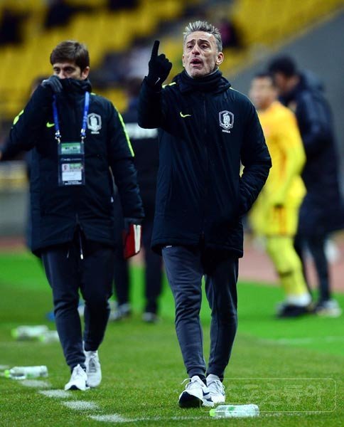 15일 부산 연제구 아시아드주경기장에서 열린 ‘2019 EAFF(동아시아축구연맹) E-1 챔피언십(동아시안컵)‘ 한국과 중국의 남자부 축구 경기에서 한국 벤투 감독이 작전을 지시하고 있다. 부산|김민성 기자 marineboy@donga.com