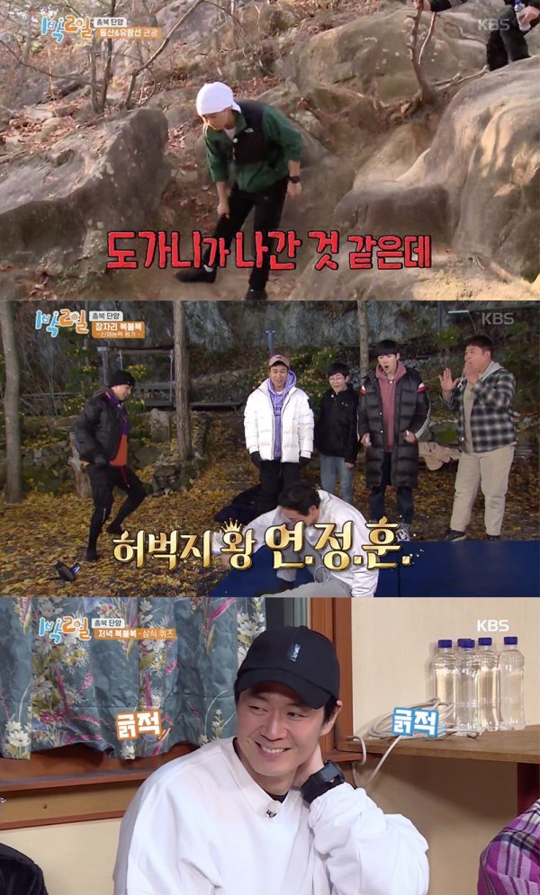 지난 14일 KBS에서는 ‘1박2일 시즌 4’ 단양 여행기 두 번째 편이 방송되었다. 이전 방송을 통해 머리 위 컵에 물붓기 게임 결과, 연정훈과 라비가 구담봉 정상을 향했다. 생각보다 힘든 등산에 지쳐가던 연정훈은 중간지점마다 놓여있던 물과, 미니 초코바를 보곤 아이와 같이 순수한 웃음을 지어 보여 귀여움과 안쓰러움을 동시에 자아냈다.