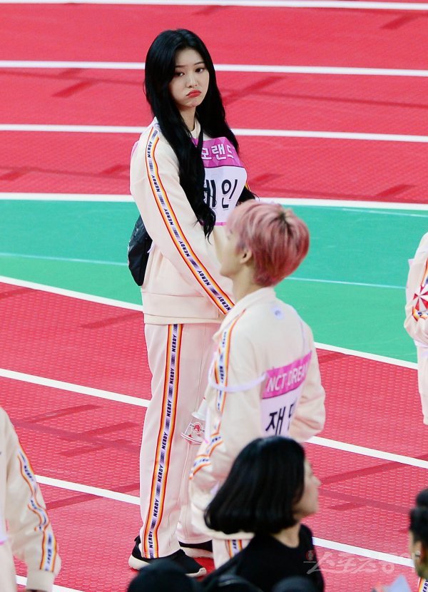걸그룹 모모랜드 멤버 제인이 16일 인천 남동구 남동체육관에서 MBC ‘2020 설특집 아이돌스타 선수권대회’ 오프닝 행사에서 입술을 내밀고 있다.