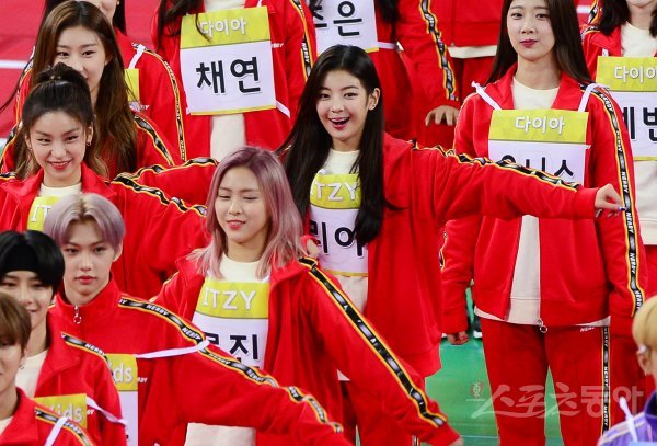 걸그룹 ITZY(있지) 멤버 리아가 16일 인천 남동구 남동체육관에서 MBC ‘2020 설특집 아이돌스타 선수권대회’ 오프닝 행사에서 몸풀기 운동을 하며 해맑게 웃고 있다.