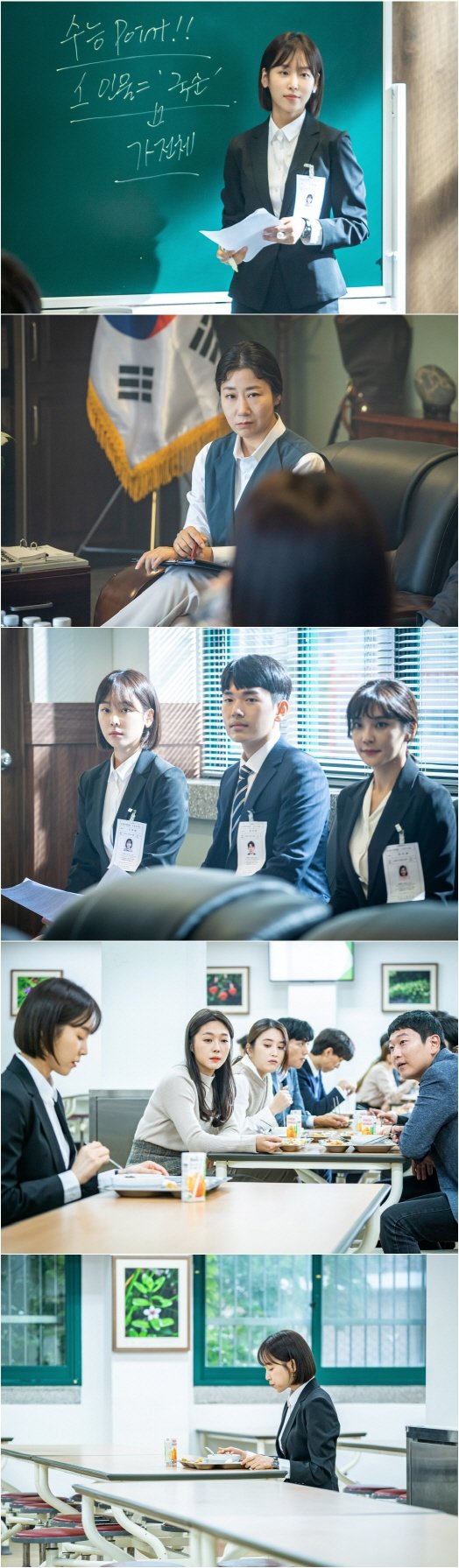 첫 방송을 앞두고 공개된 사진에는 시작부터 만만치 않은 신고식을 치르는 새내기 교사 고하늘의 모습이 담겨있다. 기간제 교사 면접에 임하는 의지 충만한 고하늘. 하지만 무슨 일인지 고하늘을 바라보는 베테랑 진학부장 박성순(라미란 분)의 눈빛이 매섭다. 면접 대상자 가운데 ‘낙하산’이 있다는 소문을 접한 박성순이 그를 색출하기 위해 날 선 ‘촉’을 세우고 있는 것. 이어진 사진 속, 시범강의를 위해 칠판 앞에 나선 고하늘의 당찬 모습도 눈길을 끈다. 임용고시에 번번이 낙방하고, 사립고 ‘기간제 교사’라는 기회를 잡은 고하늘. 그동안 갈고닦은 실력을 보여주기 위해 비장의 카드를 선보인다.