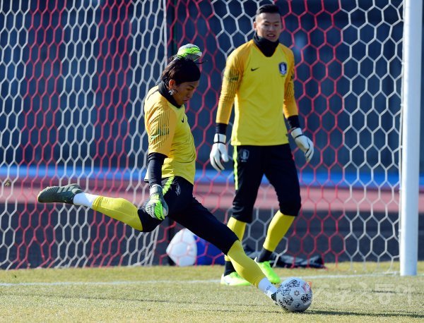 16일 부산 연제구 아시아드 보조경기장에서 ‘2019 EAFF(동아시아축구연맹) E-1 챔피언십(동아시안컵)’에 출전하는 한국축구대표팀이 회복훈련을 가졌다. 축구대표팀 김승규가 훈련을 하고 있다.