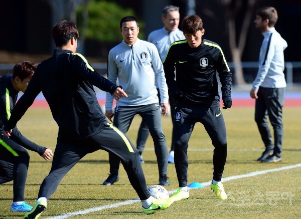 16일 부산 연제구 아시아드 보조경기장에서 ‘2019 EAFF(동아시아축구연맹) E-1 챔피언십(동아시안컵)’에 출전하는 한국축구대표팀이 회복훈련을 가졌다. 축구대표팀 김보경이 미니게임을 즐기고 있다.