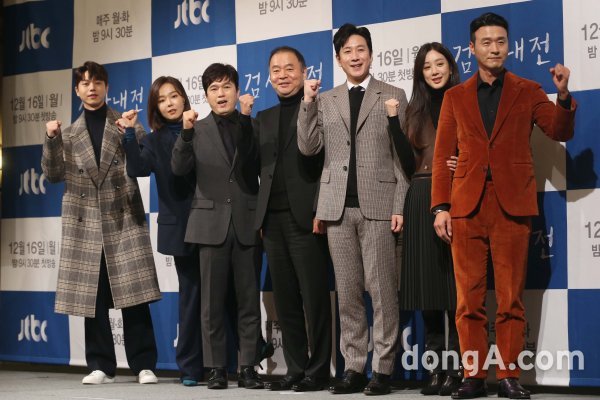 16일 오후 서울 강남구 임피리얼팰리스호텔에서 열린 JTBC 드라마 \'검사내전\' 제작발표회에서 출연진이 참석해 포토타임을 하고 있다.