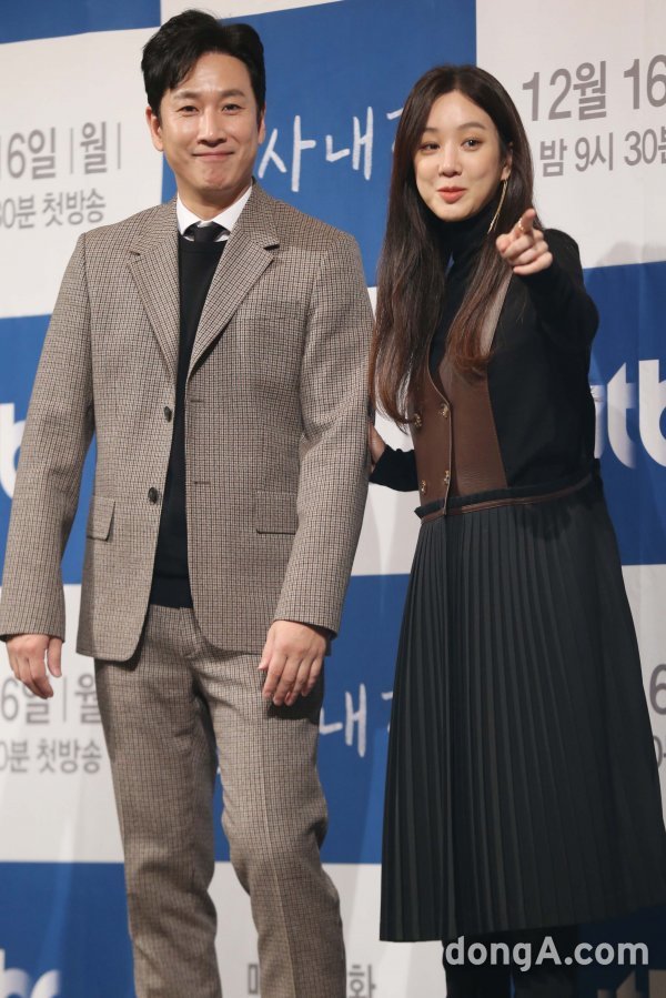 배우 이선균(왼쪽)과 정려원이 16일 오후 서울 강남구 임피리얼팰리스호텔에서 열린 JTBC 드라마 \'검사내전\' 제작발표회에 참석하고 있다.
