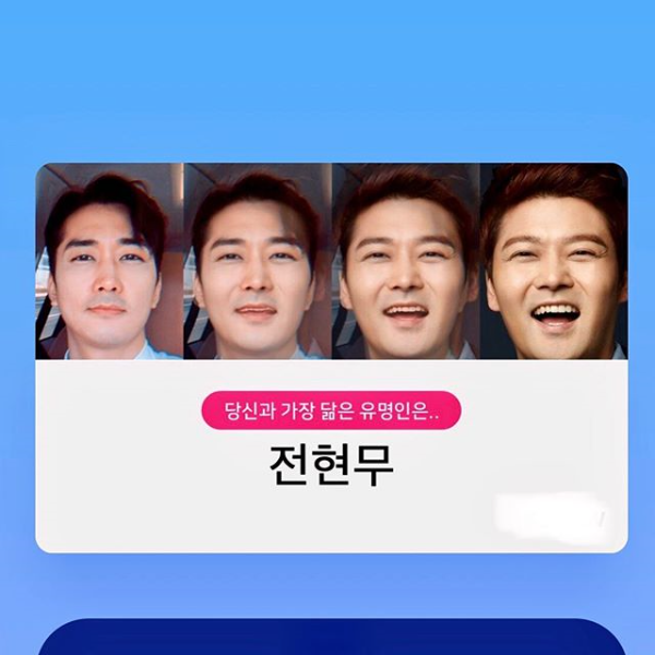 사진에는 송승헌과 가장 닮은 유명인이 전현무라는 어플리케이션 분석 결과가 담겼다. 사진 속 송승헌의 표정과 진한 눈썹이 전현무와 닮아 웃음을 자아낸다.
