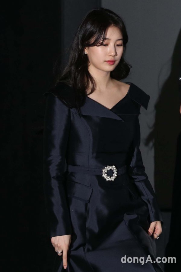 배우 배수지가 18일 오후 서울 용산구 CGV에서 열린 영화 백두산 언론배급시사회에 참석하고 있다.