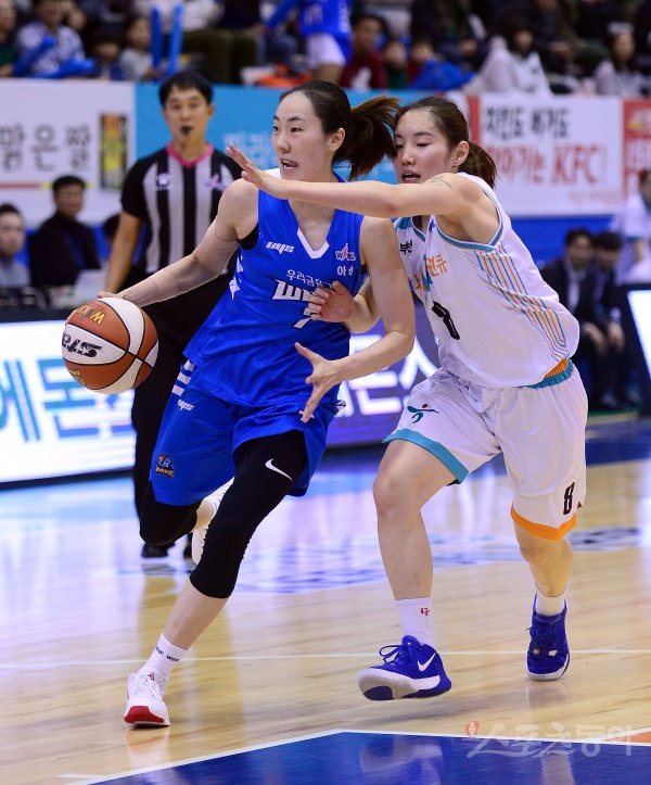 18일 아산이순신체육관에서 열린‘하나원큐 2019-2020 여자프로농구‘ KEB하나은행과 우리은행 경기에서 우리은행 박혜진이 KEB하나은행의 수비를 뚫고 골밑을 공격하고 있다.