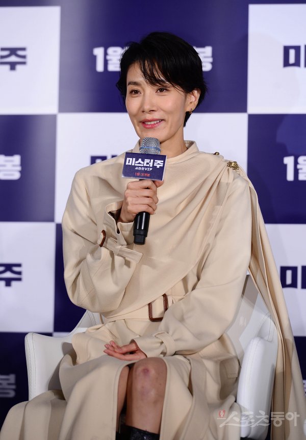 배우 김서형이 19일 서울 중구 메가박스 동대문점에서 열린 영화 ‘미스터 주: 사라진VIP’ 제작보고회에서 미소지으며 인사하고 있다.