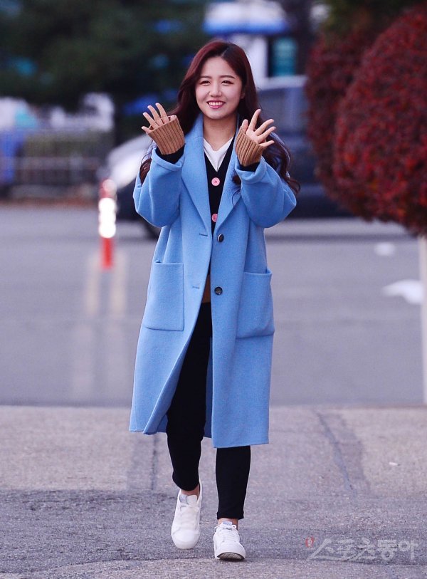 가수 정다경이 21일 서울 영등포구 KBS 별관에서 열린 KBS 2TV ‘해피투게더4’ 녹화에 참석해 입장하며 손인사하고 있다.