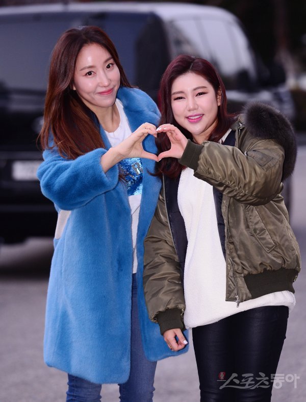 가수 숙행(왼쪽)과 송가인이 21일 서울 영등포구 KBS 별관에서 열린 KBS 2TV ‘해피투게더4’ 녹화에 참석해 포즈를 취하고 있다.