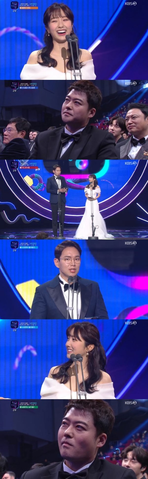 이날 우수상 코미디부문 시상자로 나선 장성규와 이혜성 아나운서. 장성규는 자연스럽게 공개 열애 중인 전현무를 언급했다. 그러면서 그가 대상 후보로 수상 가능한지 이혜성 아나운서에 물었다. 하지만 이혜성 아나운서는 엉뚱하게 장성규가 내년에 대상에 도전해 볼 수 있다고 동문서답했다.
