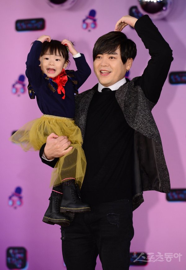 방송인 문희준과 딸이 21일 서울 영등포구 KBS 본관 로비에서 열린 ‘2019 KBS 연예대상’ 포토월에서 포즈를 취하고 있다. 주현희 기자 teth1147@donga.com