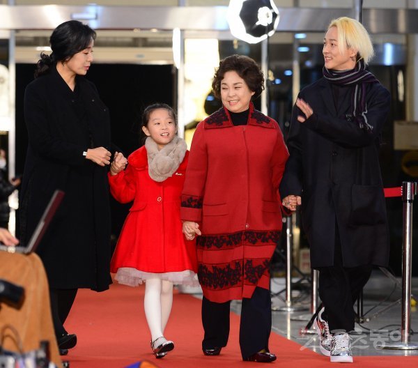 팝핀현준의 가족들이 21일 서울 영등포구 KBS 본관 로비에서 열린 ‘2019 KBS 연예대상’ 포토월에 입장하고 있다. 주현희 기자 teth1147@donga.com