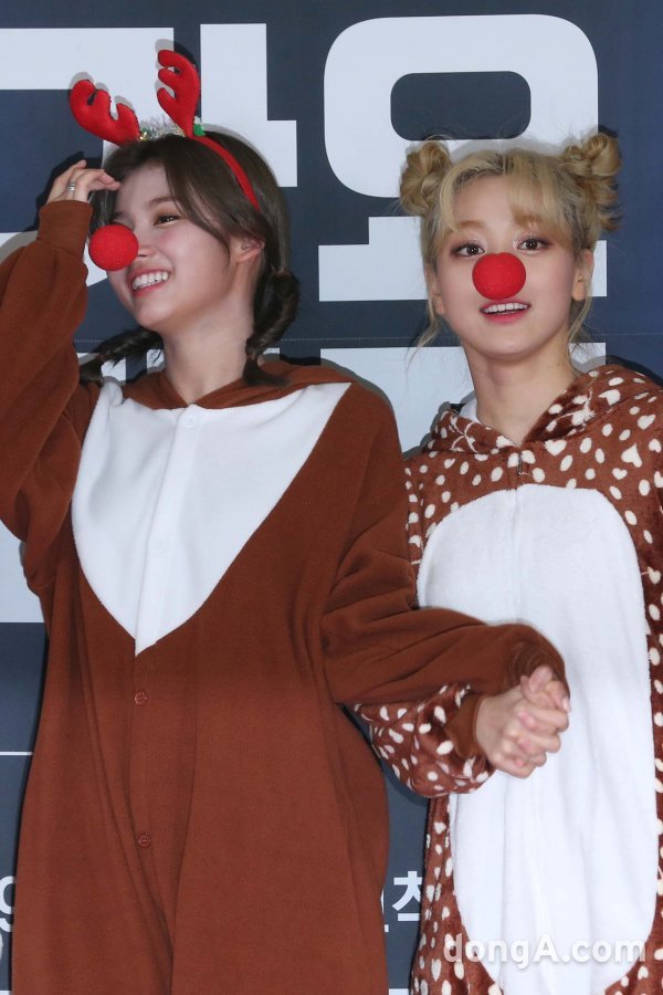 그룹 트와이스의 사나(왼쪽)과 지효가 25일 오후 서울 고척스카이돔에서 열린 \'2019 SBS 가요대전\' 포토월에서 포토타임을 갖고 있다. 동아닷컴 국경원 기자 onecut@donga.com