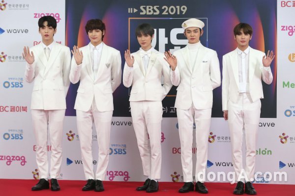 그룹 투모로우 바이 투게더가 25일 오후 서울 고척스카이돔에서 열린 \'2019 SBS 가요대전\' 포토월에서 포토타임을 갖고 있다. 동아닷컴 국경원 기자 onecut@donga.com