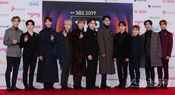 세븐틴이 25일 서울 고척스카이돔에서 열린 ‘2019 SBS 가요대전’ 포토월에서 포즈를 취하고 있다.