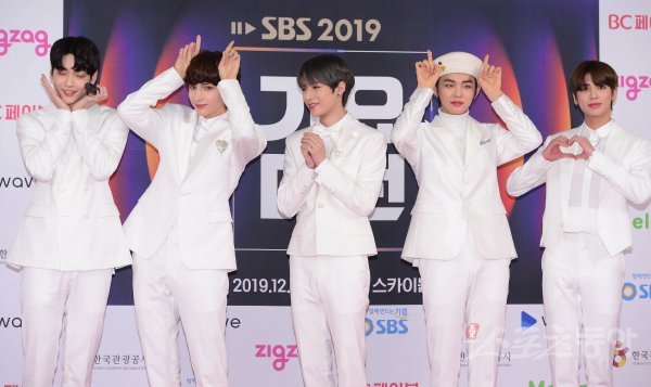 투모로우 바이 투게더가 25일 서울 고척스카이돔에서 열린 ‘2019 SBS 가요대전’ 포토월에서 포즈를 취하고 있다.