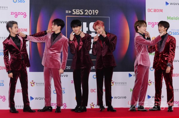 NCT드림이 25일 서울 고척스카이돔에서 열린 ‘2019 SBS 가요대전’ 포토월에서 포즈를 취하고 있다.