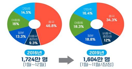 올해 대한민국을 방문한 외래 관광객이 사상 최다인 1750만 명을 기록할 전망이다. 지금까지는 2016년 기록한 1724만 명이 최다기록이었다.