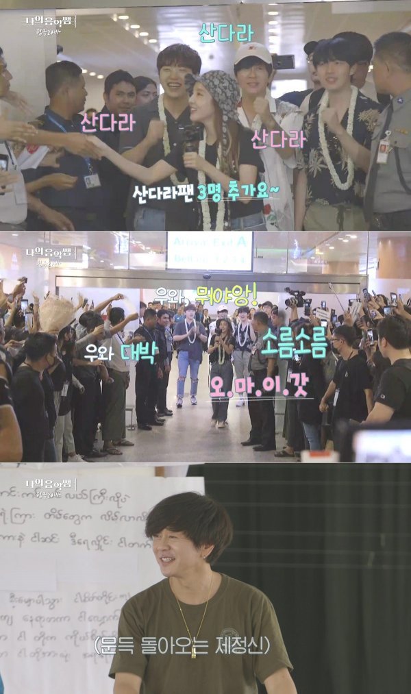 티저 영상에서는 이들이 미얀마 공항을 마비시키는 장면이 등장한다. ‘나의 음악쌤 밍글라바’ 촬영을 위해 미얀마 공항으로 출국한 이들은 엄청난 인파의 팬들을 보며 깜짝 놀란다. 미지의 나라인 미얀마에서도 KPOP의 위력을 입증하며 자랑스러워한다. 특히, 산다라박의 인기는 공항을 벗어나서도 계속되어 제작진도 놀랐다는 후문이다.