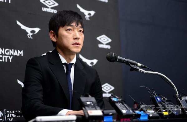 프로축구 성남 FC의 새 감독으로 선임된 김남일 감독이 26일 경기도 성남 탄천종합운동장에서 열린 취임 기자회견에 참석해 소감을 밝히고 있다.