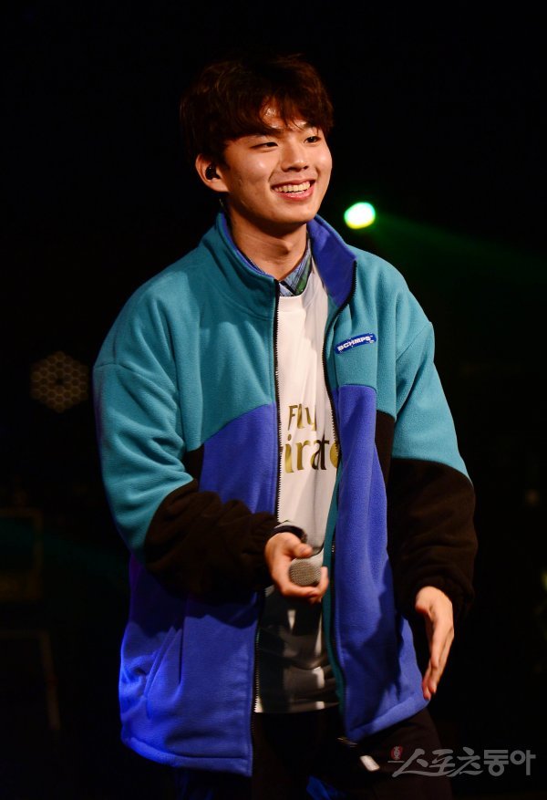 프로듀스 101 시즌2에 출연한 래퍼 하민호가 26일 서울 송파구 DNG 홀에서 열린 ‘2019 About 2020’ 연말 콘서트에서 무대를 펼치고 있다.