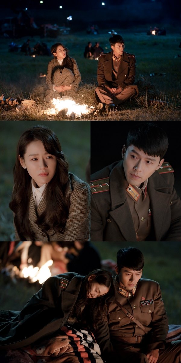 사진 속에는 타오르는 모닥불 앞에서 다정한 투샷을 보여주는 ‘둘리 커플(리정혁+윤세리)’의 모습이 담겼다. 어두운 밤하늘 아래 불빛을 의지하고 나란히 앉은 리정혁과 윤세리는 서로를 향해 애틋한 시선을 주고받고 있다. 과연 두 사람이 장교 사택 단지를 떠나 들판 위에 정처 없이 머무르게 된 이유가 무엇인지, 이들이 향하는 곳은 어디인지 호기심이 증폭된다.