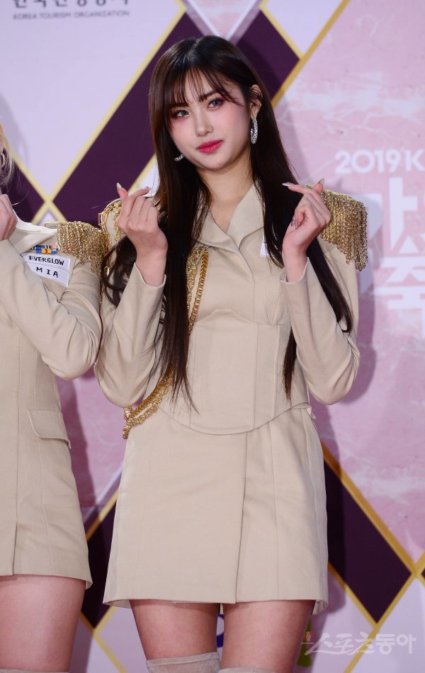 에버글로우 아샤가 27일 경기도 일산 서구 킨텍스에서 열린 ‘2019 KBS 가요대축제’ 포토월에서 포즈를 취하고 있다.