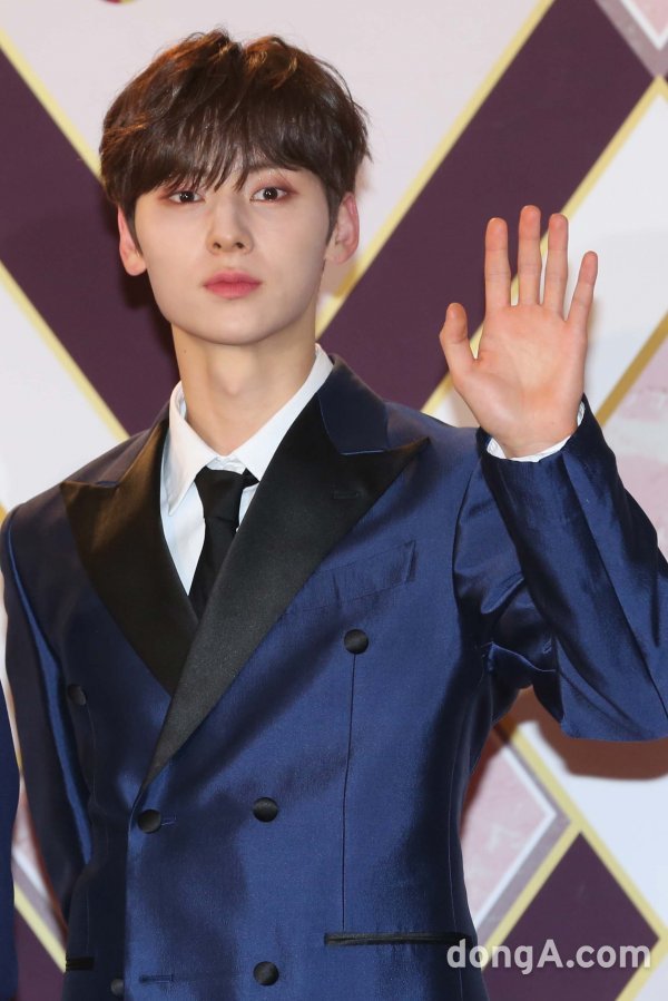그룹 뉴이스트의 황민현이 27일 오후 경기 일산 킨텍스에서 열린 KBS가요대축제 레드카펫 행사에 참석하고 있다.