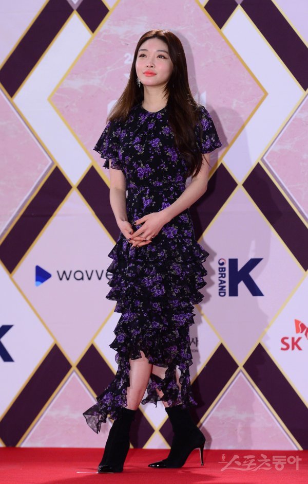 가수 청하가 27일 경기도 일산 서구 킨텍스에서 열린 ‘2019 KBS 가요대축제’ 포토월에서 포즈를 취하고 있다.