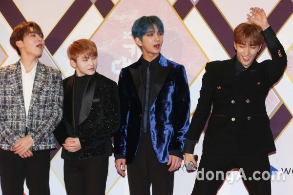 그룹 세븐틴의 도겸(오른쪽)이 27일 오후 경기 일산 킨텍스에서 열린 KBS가요대축제 레드카펫 행사에 참석하고 있다.