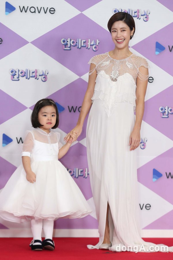 배우 이윤지가 28일 오후 서울 마포구 SBS에서 열린 \'2019 SBS 연예대상\' 시상식에 딸 라니와 함께 참석하고 있다.