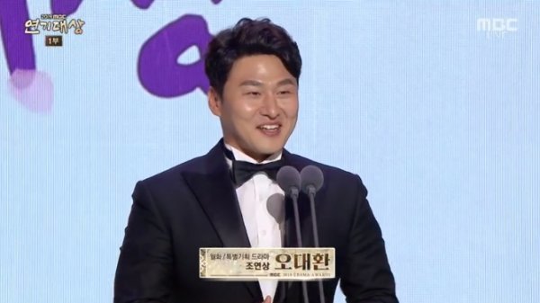 수상자는 오대환. 오대환은 “귀한 상 주셔서 감사하다. 2010년도에 첫 드라마 MBC ‘로드 넘버원’을 찍을 때 선배들이 열심히 하면 뭐라도 된다고 말씀해주셨다. 딱 10년차 되는 지금 뭐라도 된 거 같다. 감사하다”고 수상소감을 전했다.