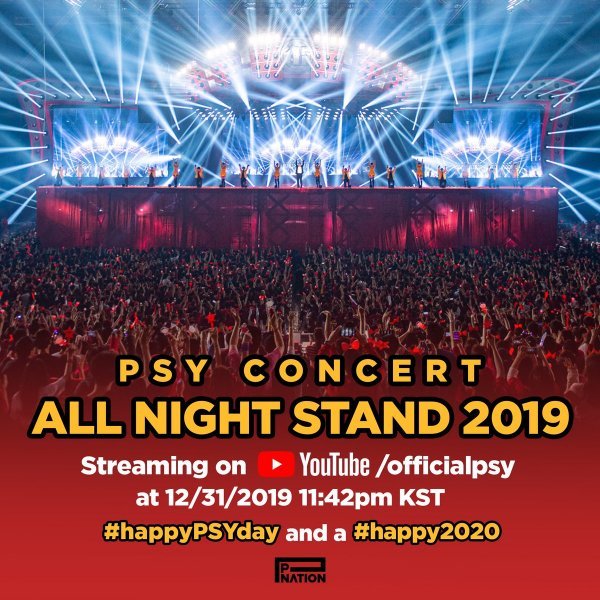 2019년의 마지막과 2020년의 시작을 함께할 싸이의 ‘올나잇스탠드 2019’ 실황 영상은 31일 밤 11시 42분부터 싸이 공식 유튜브 채널을 통해 시청할 수 있다.